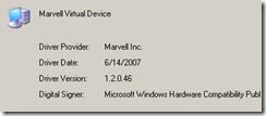 There has been an update to the Marvell Virtual Device driver since HP put the lid on the EX470. Here is the device information before the update: