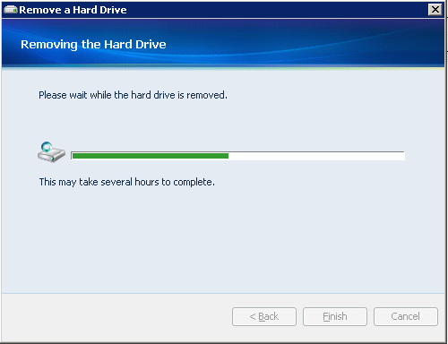 After you click Finish, the process begins. Depending on the amount of data already on the drive, this could take several hours (as you are warned). And yes, mine did in fact take "several hours".